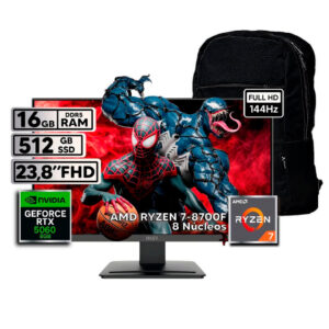 PC de mesa Power Group con AMD Ryzen 7 8700F, 16GB DDR5, SSD M.2 de 512GB y tarjeta gráfica RTX 5060 de 8GB. Incluye monitor MSI 23.8” FHD 144Hz IPS, teclado, mouse, licencias Kaspersky y bolso.