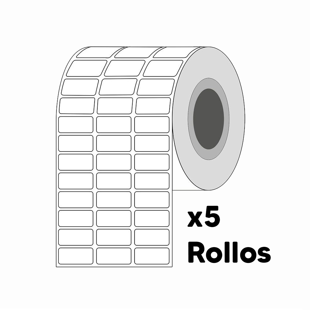 • Uso: Códigos de barras, precios, inventario y etiquetado de productos • Kit de 5 rollos