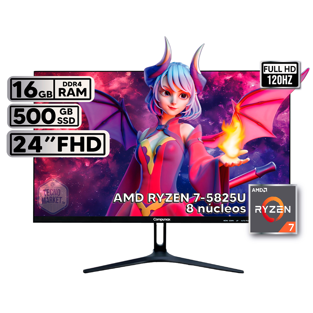 PC de Mesa Mini Compumax – AMD Ryzen 7 5825U – 16GB RAM – 500GB SSD – Monitor 23.8″ FHD 120Hz + Teclado y Mouse