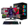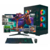 La parte gráfica está a cargo de la tarjeta de video MSI GeForce RTX 3050 de 6 GB GDDR6, adecuada para diseño gráfico, edición multimedia y juegos actuales. El equipo se presenta en un chasis W82 color negro, acompañado por una fuente de poder Power Group de 600W con certificación 80 Plus Bronze, garantizando estabilidad eléctrica. Incluye un monitor ASUS VG249QE5A de 23.8 pulgadas Full HD, 146 Hz, panel IPS y 1 ms, además de teclado, mouse, dos licencias Kaspersky y bolso, ofreciendo una solución completa lista para usar.