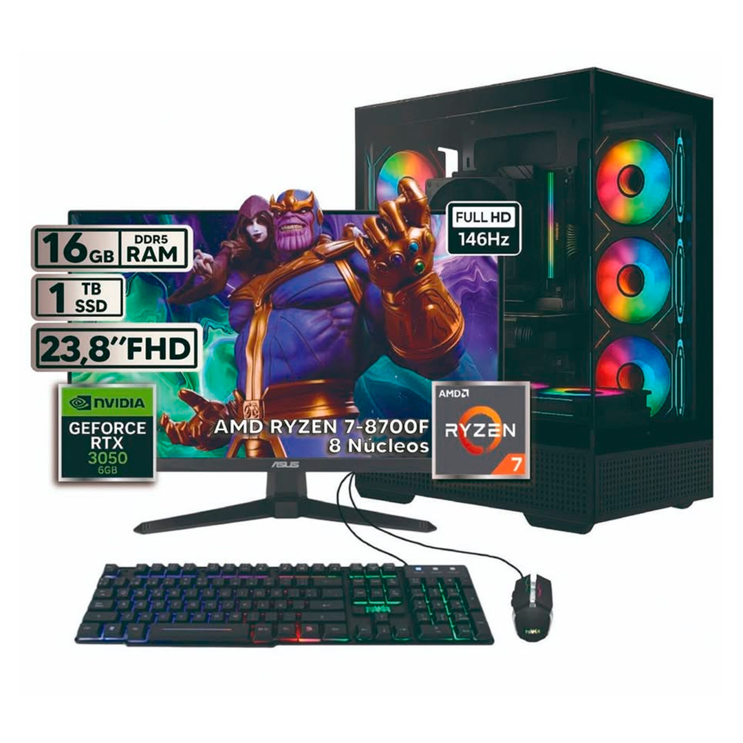 La PC de Mesa Power Group Integra el procesador AMD Ryzen 7 8700F, que ofrece un desempeño potente en aplicaciones exigentes, productividad intensiva y uso prolongado del sistema. Cuenta con 16 GB de memoria RAM DDR5 a 6000 MHz con iluminación RGB, lo que asegura mayor velocidad, eficiencia y respuesta fluida del sistema. El almacenamiento SSD M.2 de 1 TB brinda amplio espacio para software, archivos y juegos, además de arranques rápidos y tiempos de carga reducidos.