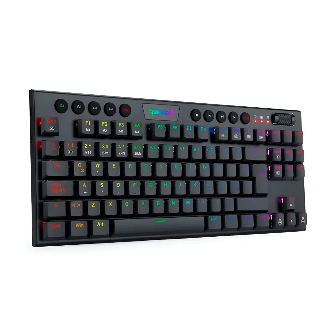 El teclado Redragon Horus TKL K621 RGB es un periférico mecánico inalámbrico diseñado para usuarios que buscan comodidad, versatilidad y rendimiento tanto en gaming como en productividad y uso cotidiano. Este modelo combina conectividad Bluetooth y receptor USB inalámbrico, permitiendo emparejarlo fácilmente con PCs, laptops, tablets o dispositivos compatibles sin cables adicionales.
