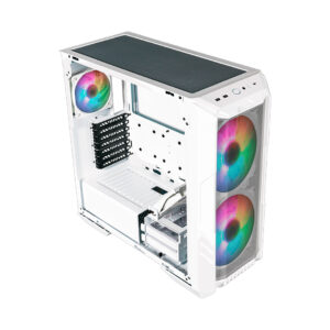 Chasis Cooler Master HAF 500 ARGB blanco con 3 ventiladores ARGB, excelente flujo de aire y diseño gamer moderno.