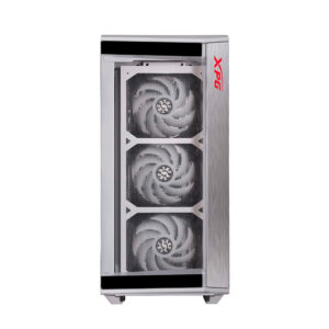 Chasis XPG Starker blanco con 1 ventilador ARGB y 1 ventilador no RGB, ideal para ensambles gaming modernos.