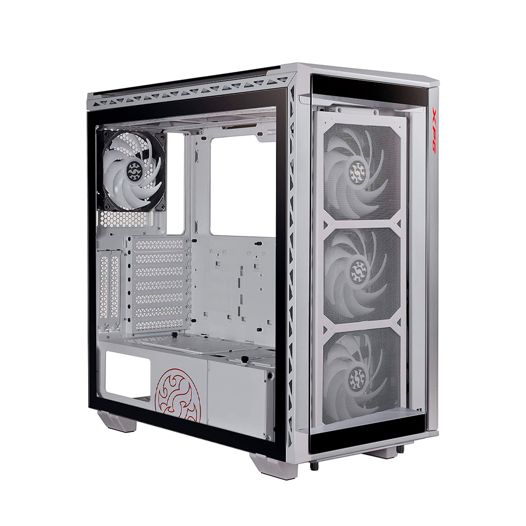Este modelo incluye 4 ventiladores ARGB preinstalados, que garantizan un flujo de aire eficiente y una iluminación personalizable desde el primer encendido. Su acabado en color blanco aporta un estilo elegante y llamativo, ideal para configuraciones gaming de alto nivel.