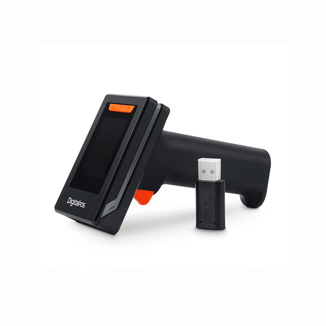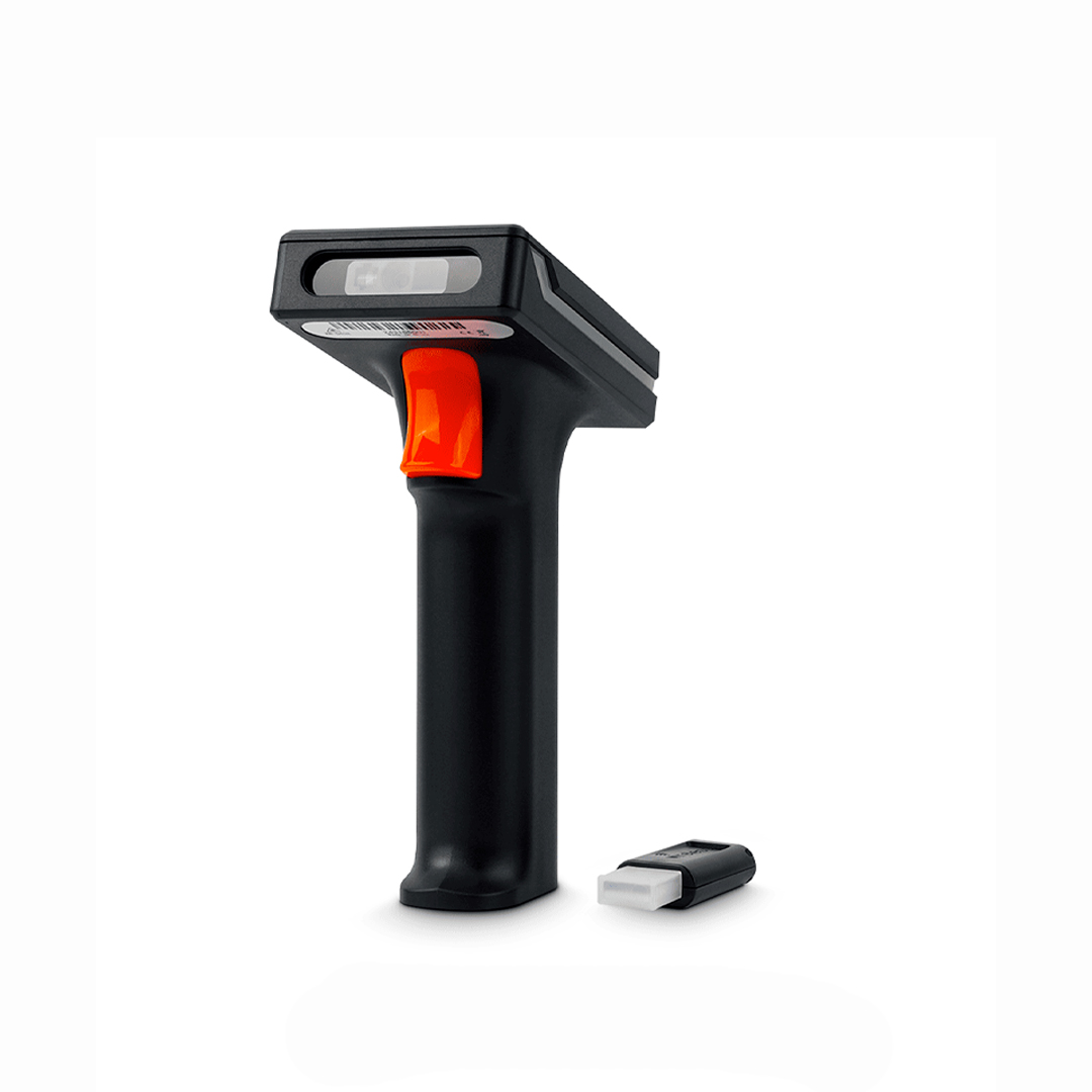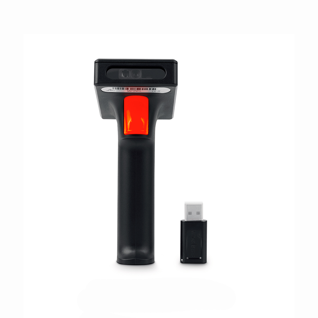 Este lector ofrece conectividad inalámbrica dual, permitiendo emparejarse mediante receptor 2.4 GHz dedicado o Bluetooth BLE 4.0, lo que facilita su uso con computadores, tablets y dispositivos móviles. Además, alcanza una distancia de transmisión de hasta 30–50 metros en espacios abiertos, brindando mayor libertad de movimiento. Incluye pantalla integrada, que permite visualizar datos escaneados en tiempo real, revisar información almacenada y monitorear el nivel de batería. También admite modo de almacenamiento sin conexión, permitiendo guardar códigos cuando no hay conexión activa y sincronizarlos posteriormente.