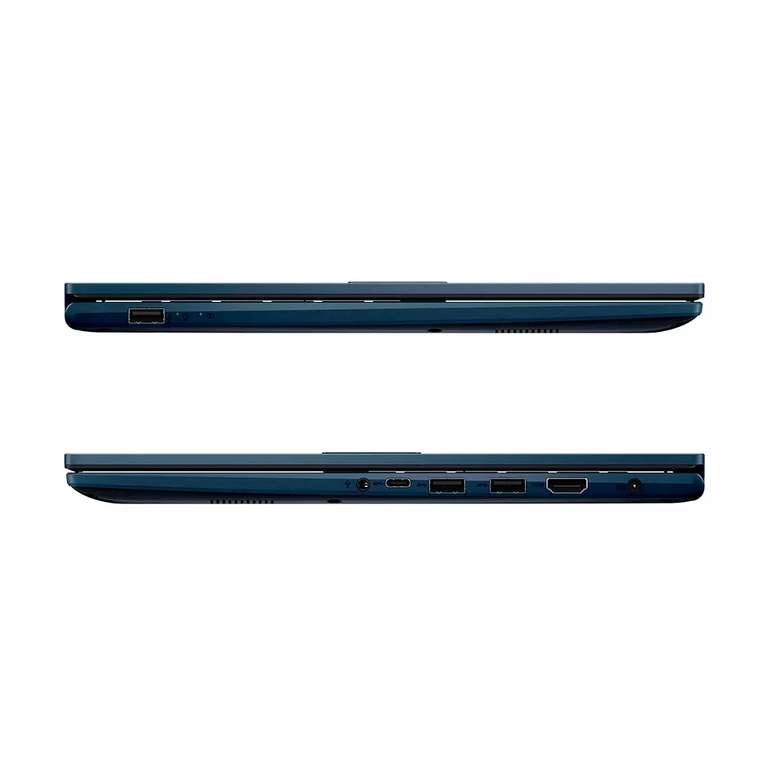 El equipo presenta un diseño moderno y sobrio en color Quiet Blue, característico de la línea ASUS, combinando portabilidad y funcionalidad para usuarios que buscan un portátil confiable para el día a día.