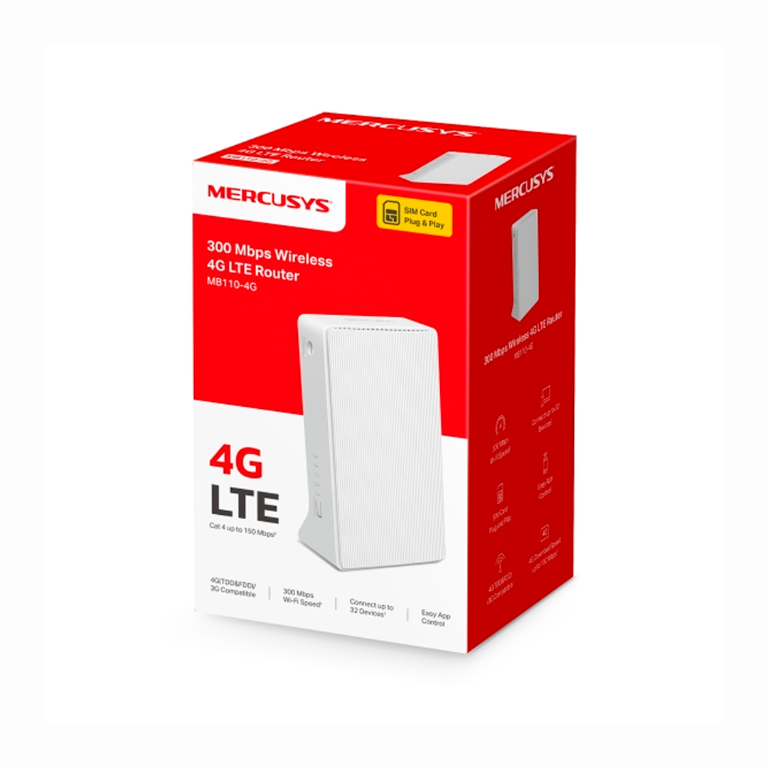 El Mercusys MB110-4G V2 es un router inalámbrico diseñado para ofrecer conexión a internet a través de redes 4G LTE, ideal para hogares, oficinas, negocios o lugares donde no se dispone de internet fijo. Permite compartir la conexión móvil fácilmente y crear una red estable para múltiples dispositivos. Su funcionamiento es Plug & Play, lo que significa que solo necesitas insertar una tarjeta SIM compatible para comenzar a usar internet de inmediato, sin configuraciones complicadas.