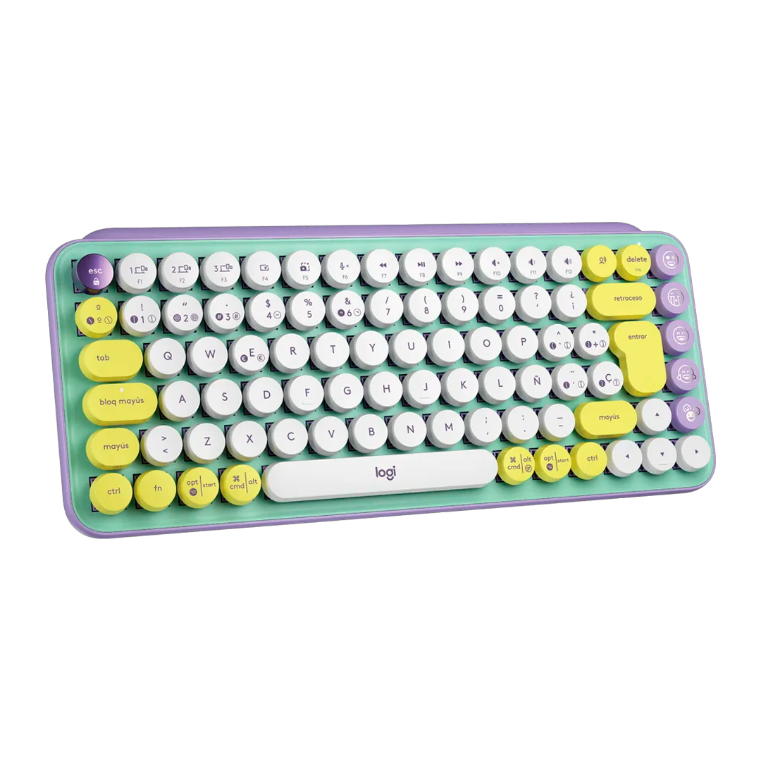 Teclado Logitech POP Keys – Amarillo/Verde/Lila – Bluetooth – Receptor USB – Logi Bolt