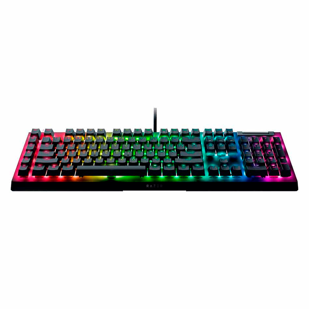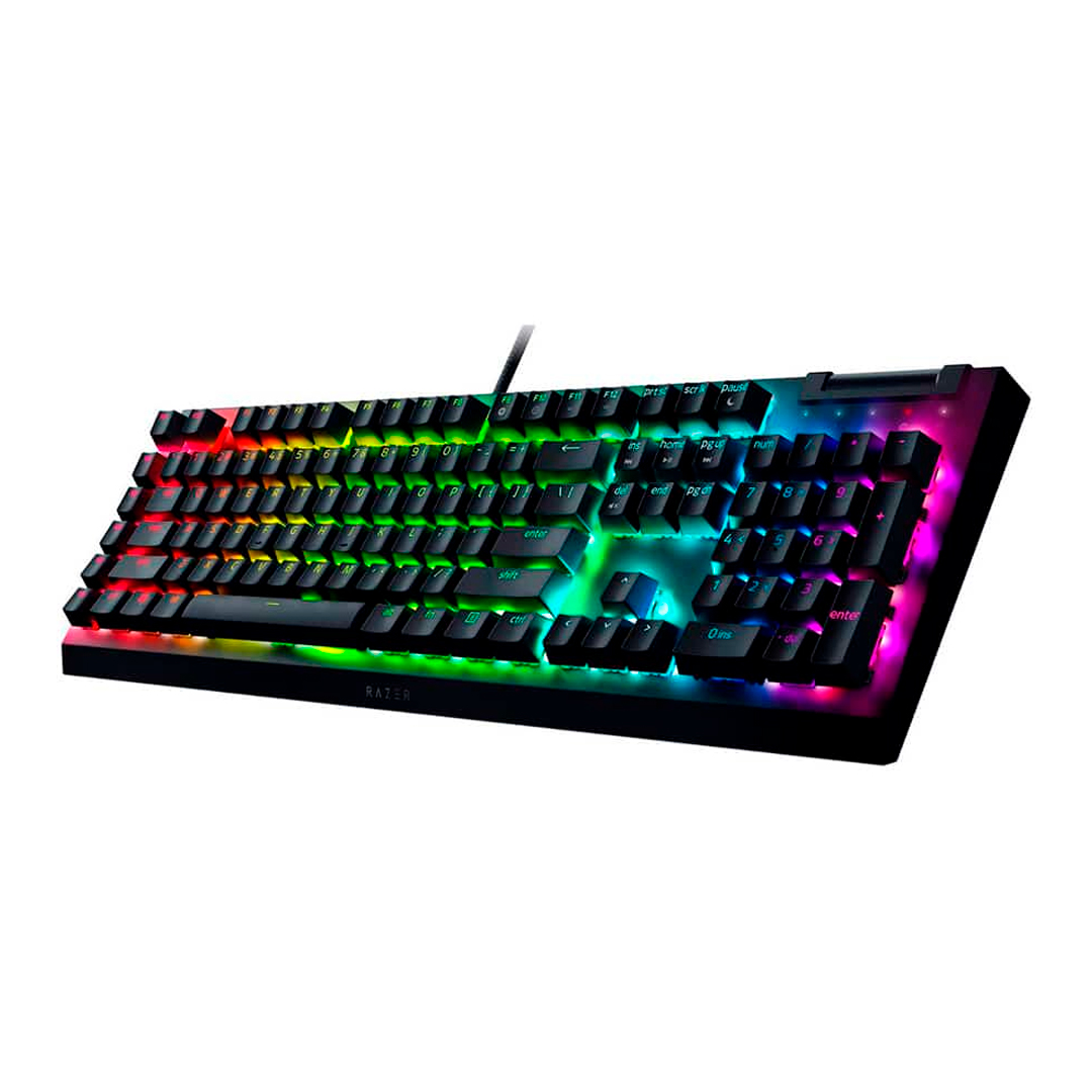 El Teclado Razer BlackWidow V4 X es un teclado gaming mecánico alámbrico diseñado para jugadores que buscan precisión, control avanzado y una experiencia de escritura sólida y confiable. Este modelo incorpora switches mecánicos Razer Green, que ofrecen una respuesta táctil con clic audible, ideal para jugadores y usuarios que prefieren una confirmación clara en cada pulsación. Su activación precisa permite ejecutar comandos con total seguridad tanto en juegos como en tareas de productividad.