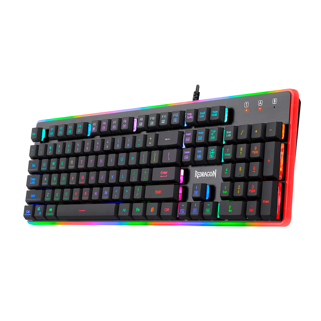 El teclado Redragon Dyaus K509 RGB es un periférico alámbrico diseñado para ofrecer comodidad, durabilidad y una experiencia de uso visualmente atractiva, ideal para gaming, trabajo y uso diario. Con conectividad USB alámbrica, este teclado permite una instalación rápida y sencilla sin necesidad de software adicional.