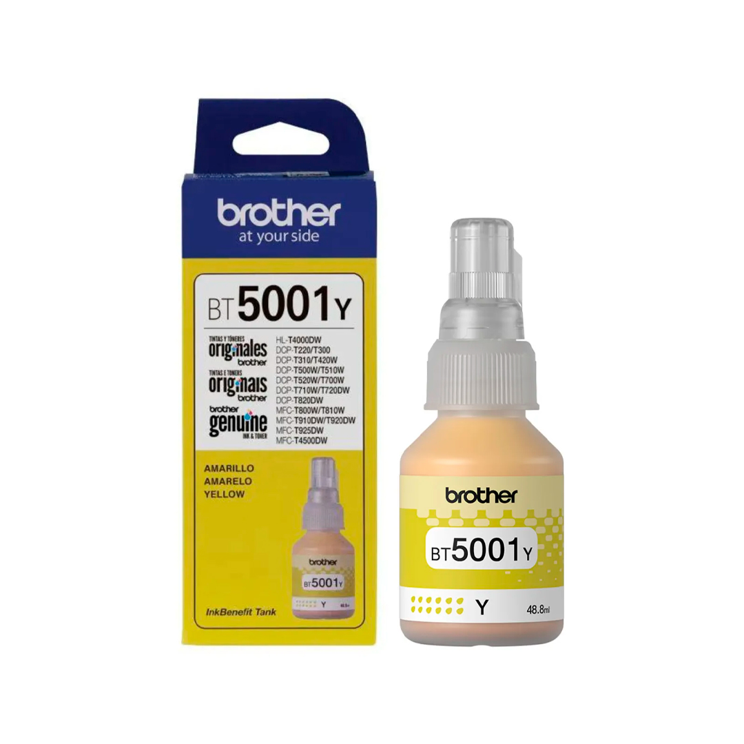 La tinta Brother 5001Y amarilla es un consumible original diseñado para impresoras Brother con sistema de tanque de tinta (InkTank). Esta botella de tinta proporciona el color amarillo necesario para la impresión de documentos y materiales en color, ofreciendo resultados vibrantes y consistentes.