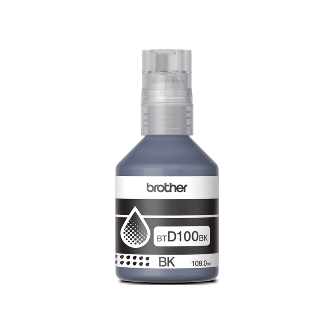 La tinta Brother D100BK negra es un consumible original diseñado para impresoras Brother con sistema de tanque de tinta (InkTank). Esta botella de tinta ofrece un negro intenso y consistente para la impresión de documentos, textos y gráficos en blanco y negro.