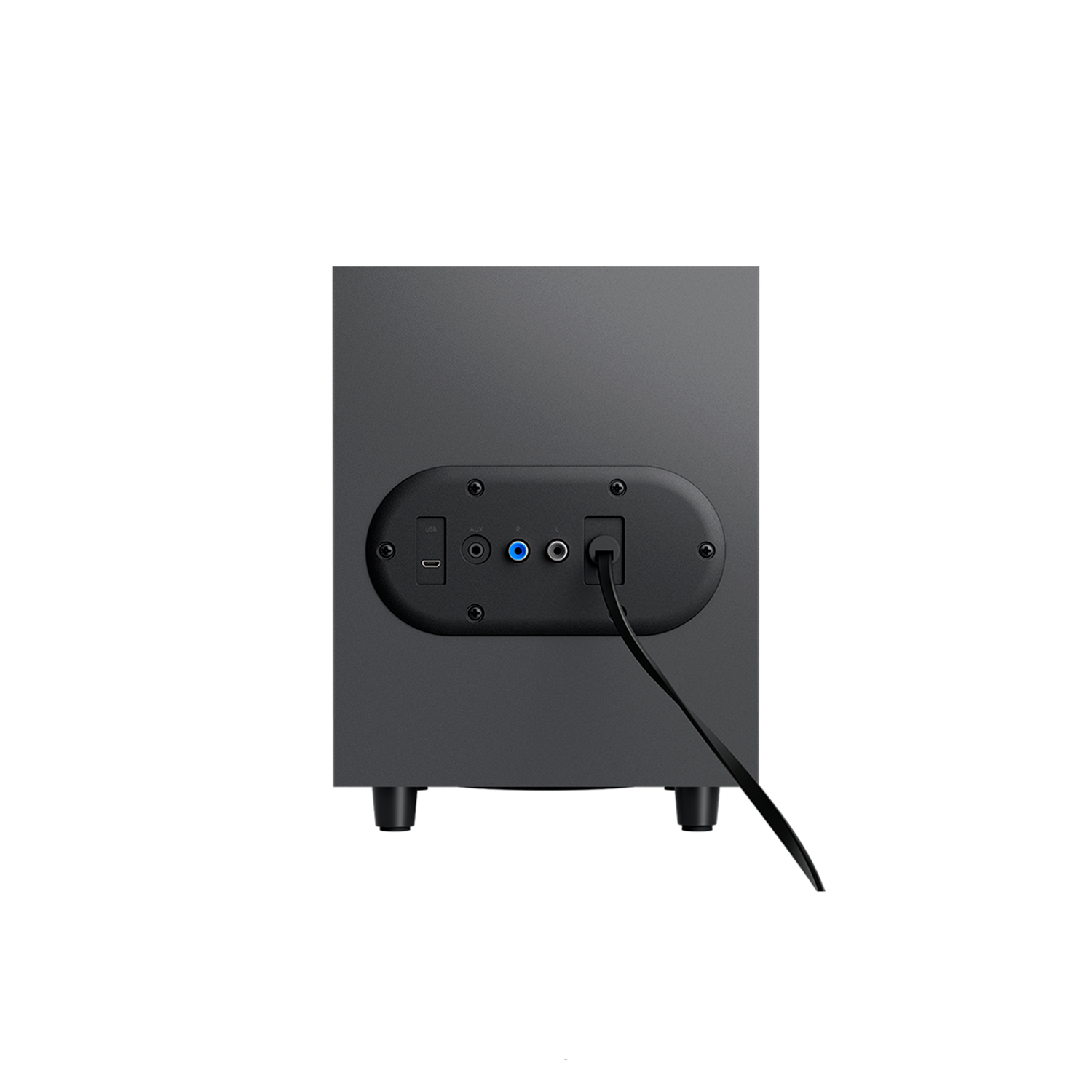 Una de sus principales ventajas es su conectividad versátil. El Logitech Z407 se puede conectar a través de Bluetooth 5.0, entrada de 3.5 mm o USB, lo que permite enlazarlo fácilmente con computadoras, laptops, televisores, consolas o dispositivos móviles. Además, cuenta con un control inalámbrico giratorio, con un alcance de hasta 20 metros, que facilita ajustar el volumen, gestionar la reproducción o cambiar de dispositivo sin necesidad de moverse.
